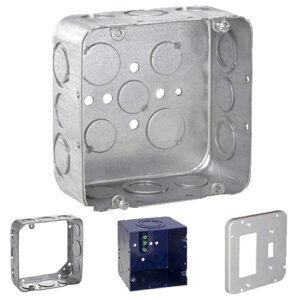 Eaton Crouse-Hinds | 4-Inch Steel Square Outlet Boxes, Covers, Extension Rings