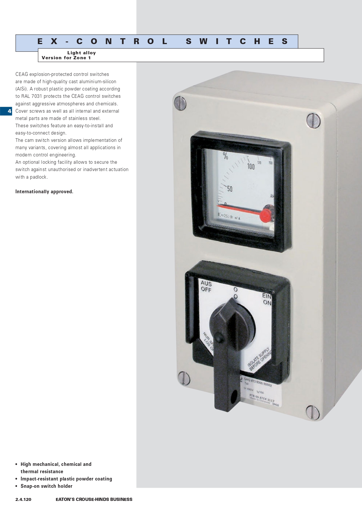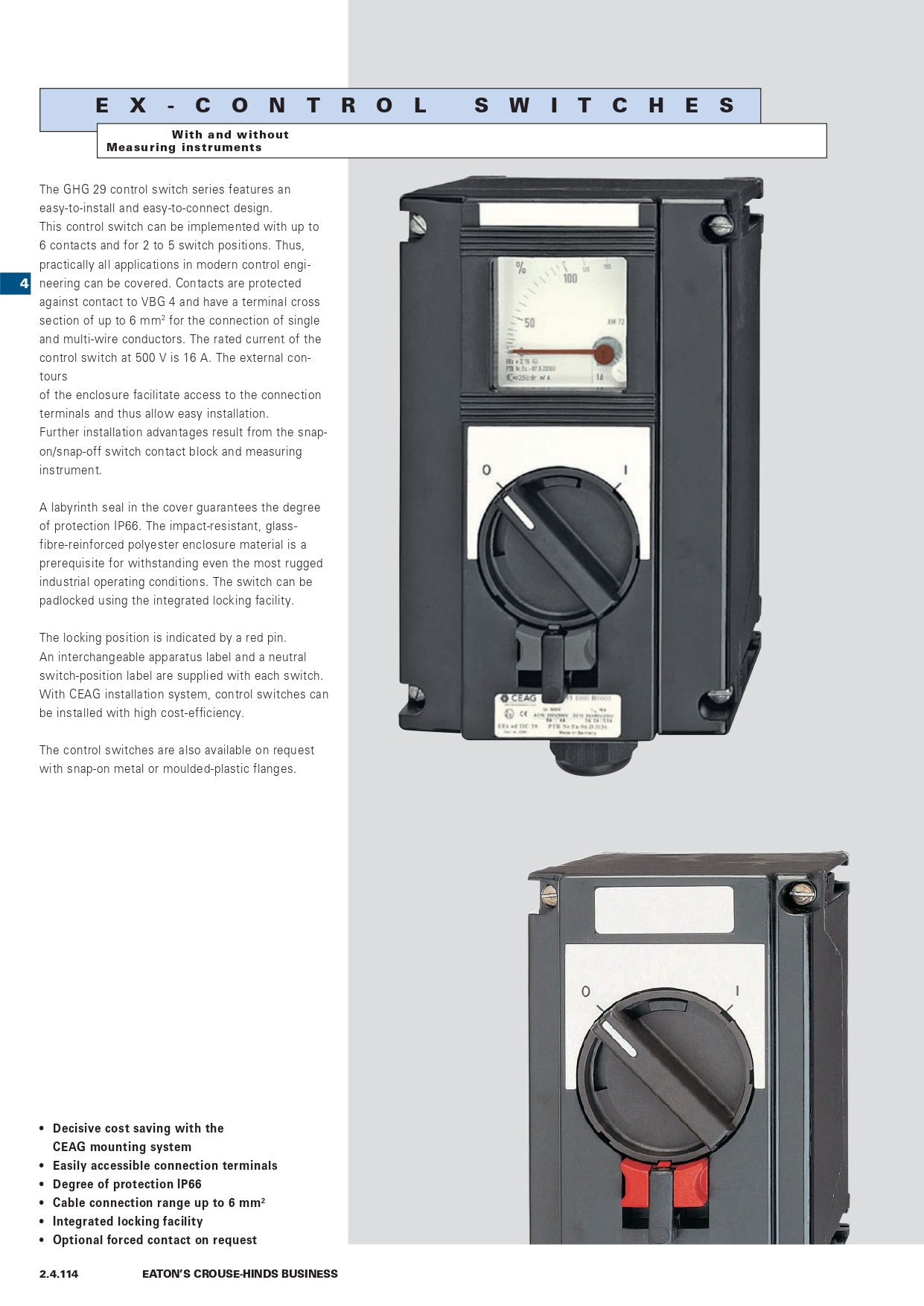 Crouse-Hinds series CEAG GHG29 Ex-protected control switches are available with up to six contacts and for 2 to 5 switch positions, making them an ideal solution for power control applications in hazardous and harsh areas.