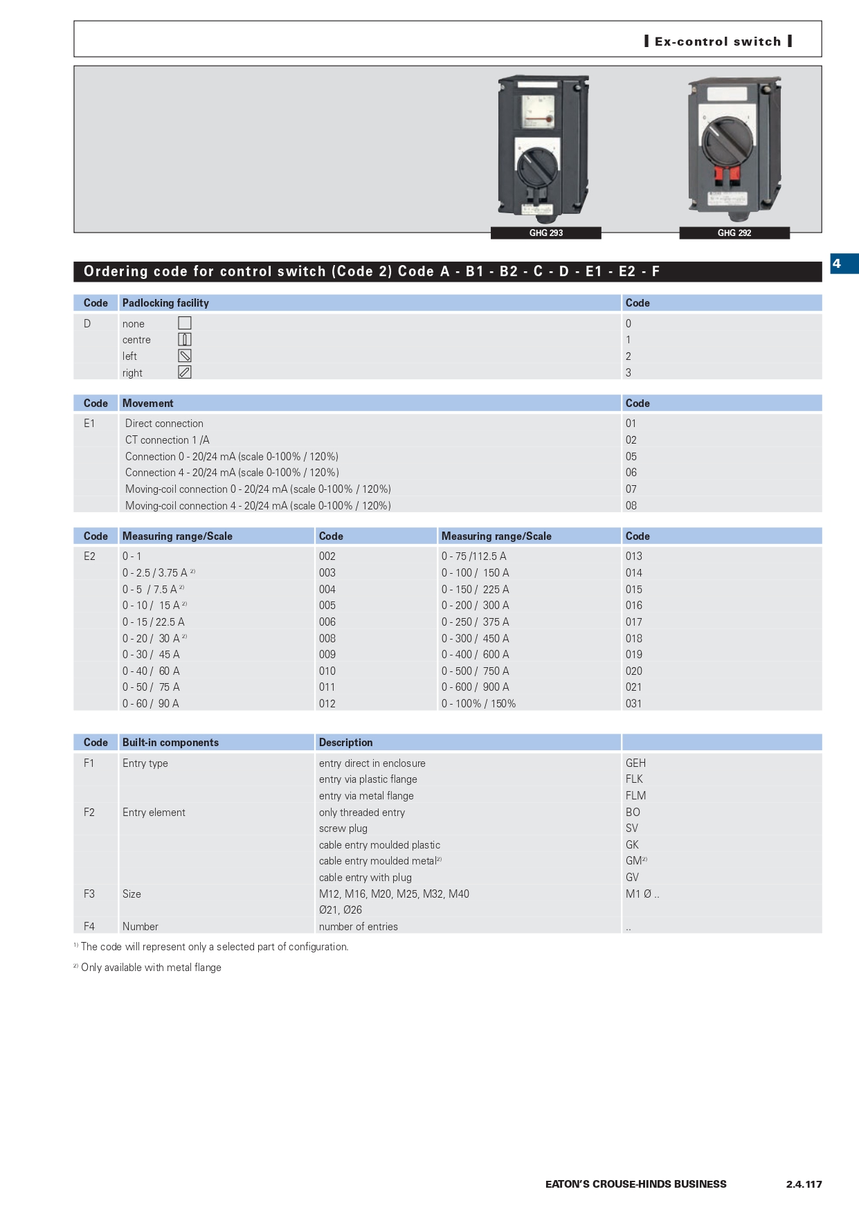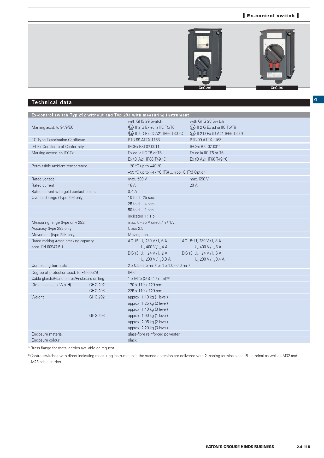 GHG2921000R0003 | Ex-control station 292 with silver contacts, contact arrangement 4, code 67 |