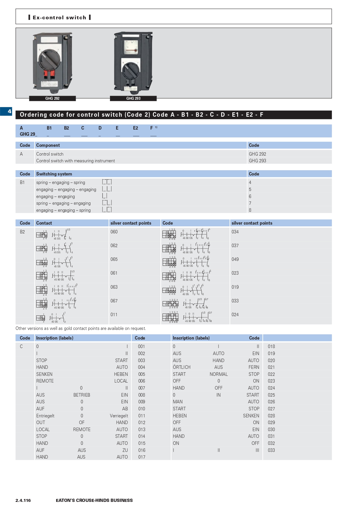 GHG2942000R0004 | Ex-control station 294 with silver contacts, contact arrangement 5, code 23 |