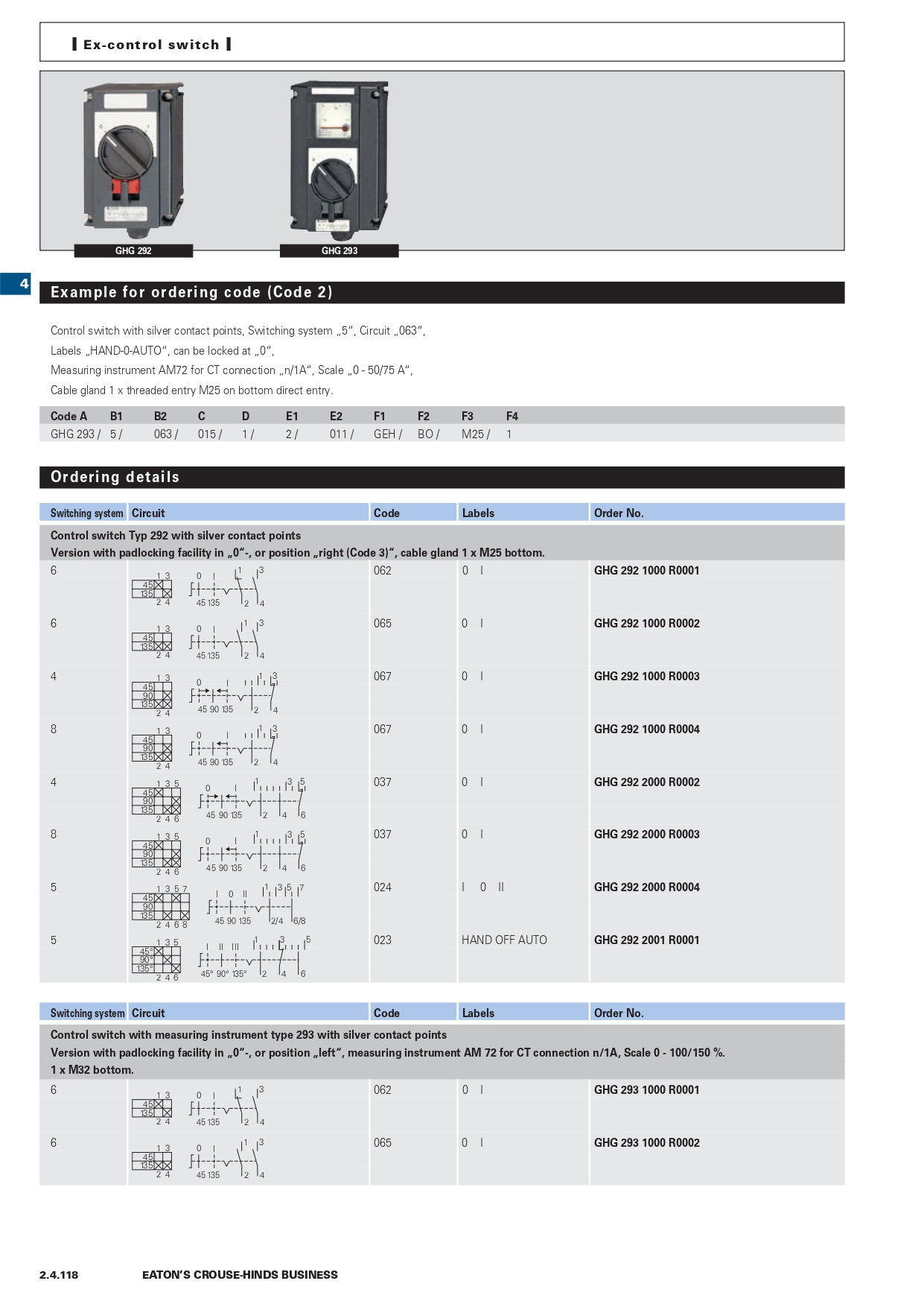 GHG2922000R0004 | Ex-control station 292 with silver contacts, contact arrangement 5, code 24 |