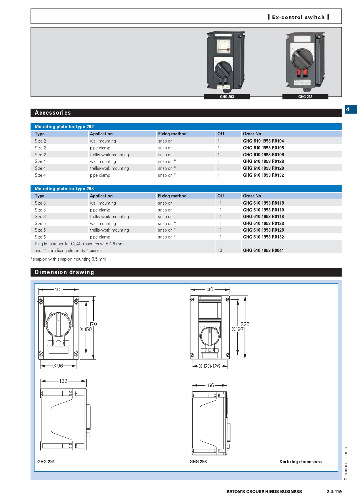 GHG296065010 | Control switch GHG 29 enclosure mounting |