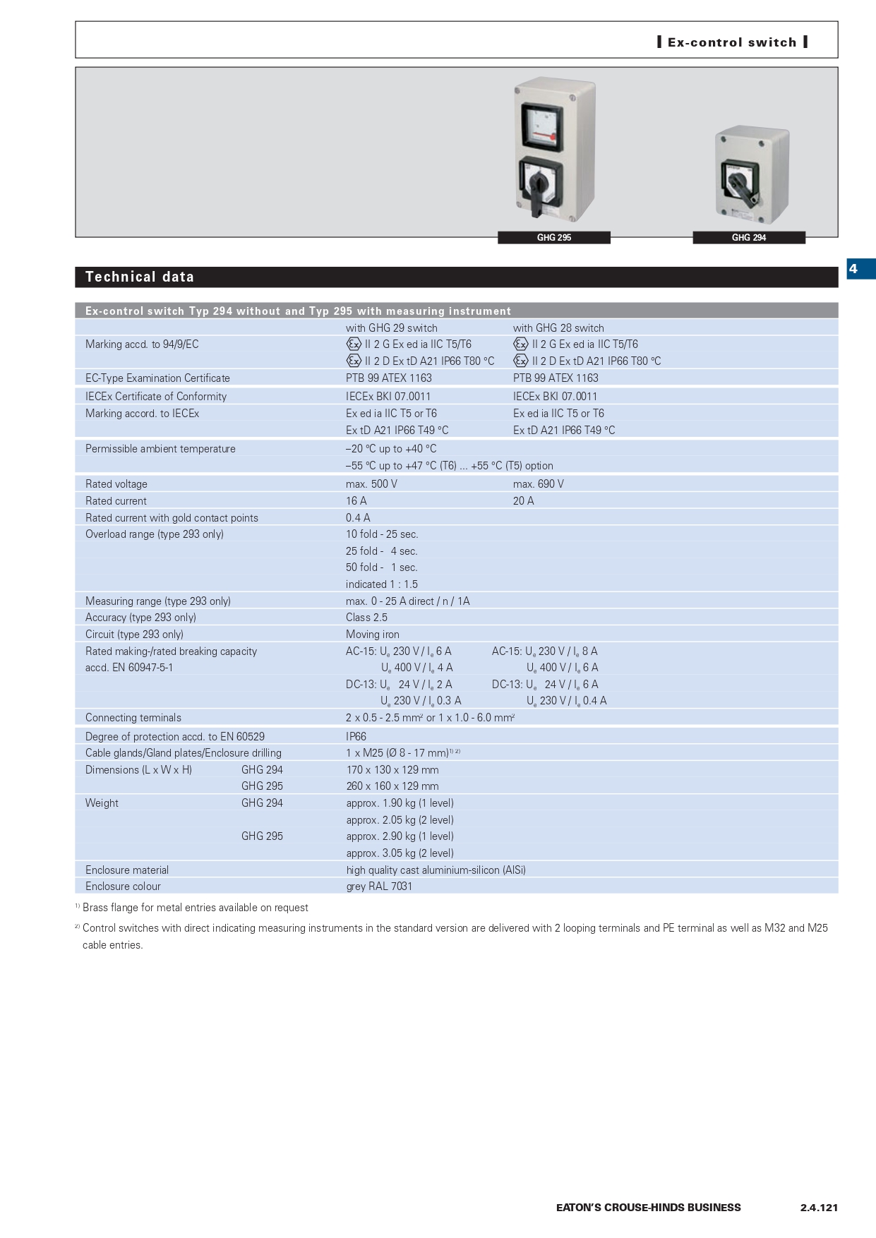 GHG2941000R0003 | Ex-control station 294 with silver contacts, contact arrangement 4, code 67 |