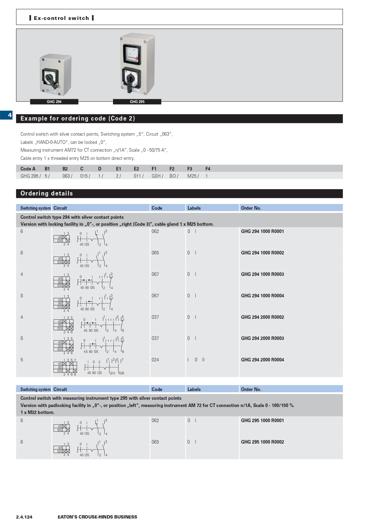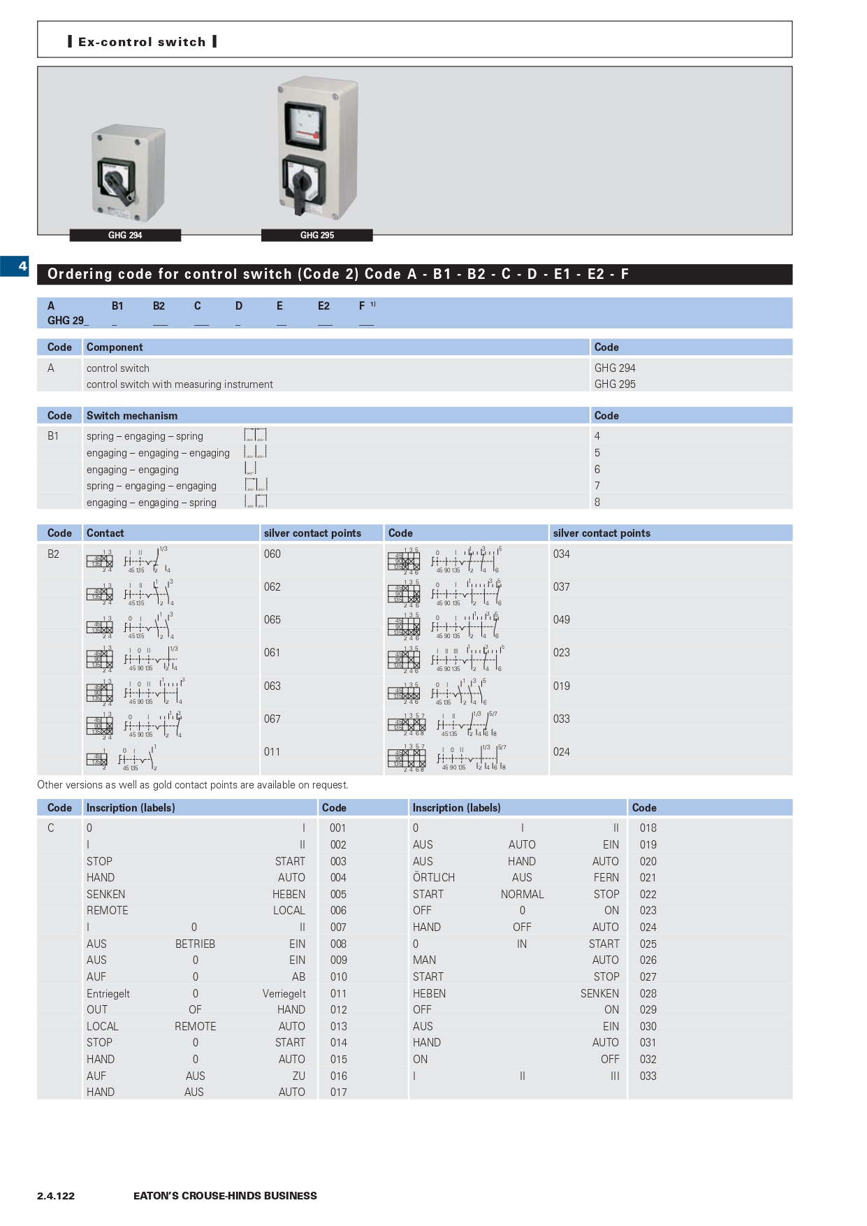 GHG2942000R0003 | Ex-control station 294 with silver contacts, contact arrangement 5, code 24 |