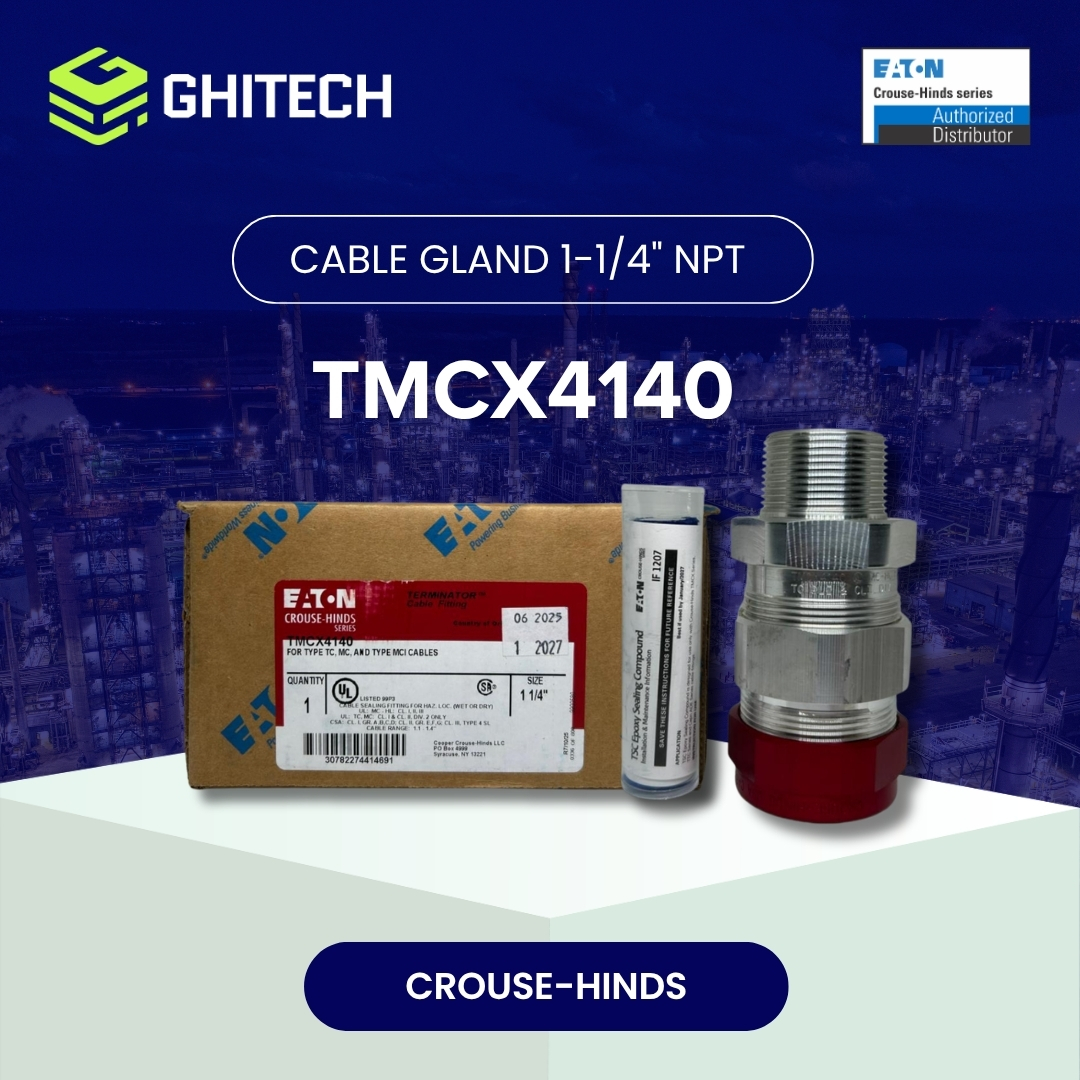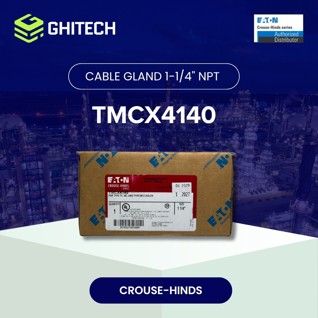 TMCX4140 adalah barrier cable gland ukuran besar (1-1/4 Inch) yang dirancang untuk perlindungan maksimal di lokasi berbahaya (Hazardous Locations). Sebagai Distributor Resmi Eaton Crouse-Hinds, kami memastikan produk ini memenuhi standar keamanan tertinggi untuk aplikasi industri berat.