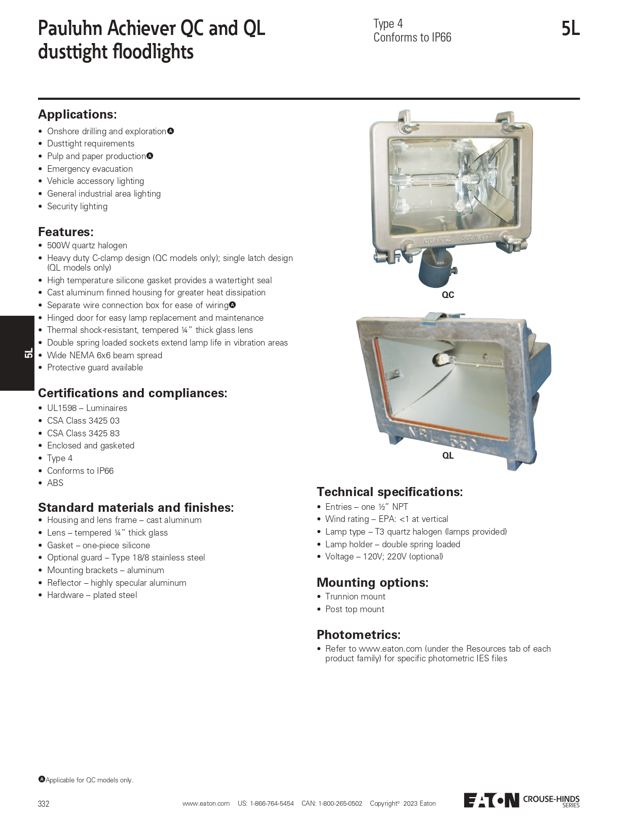Crouse-Hinds series Pauluhn Achiever dusttight floodlights are designed for use in markets with dusttight requirements, such as land-based drilling and exploration, pulp and paper production, mining operations and more.