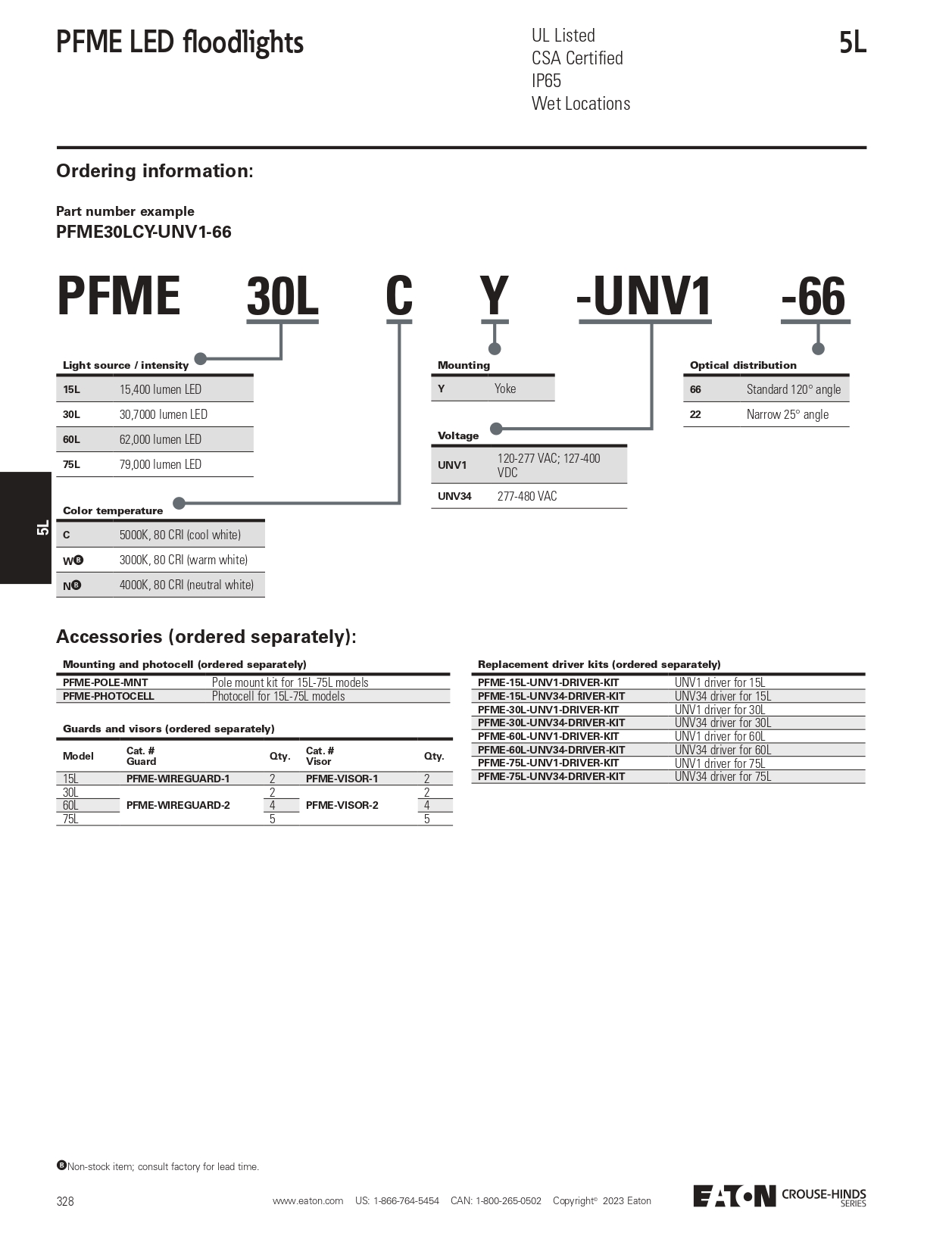 PFME LED floodlights are certified for use wet locations and are UL Listed and CSA certified.