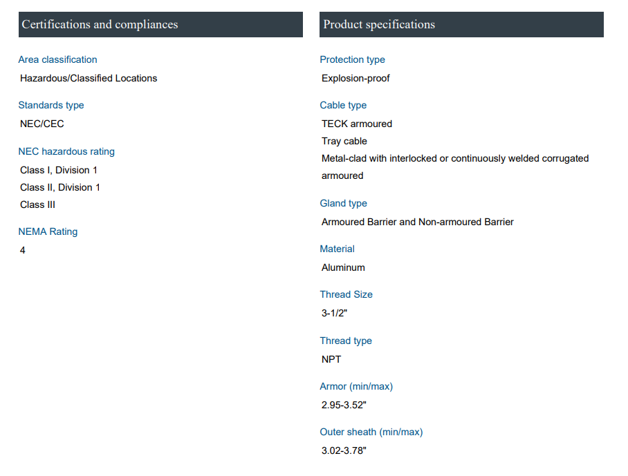 The Eaton TMCX9352 is an explosion-proof armored cable gland designed for hazardous locations. Here are some key details: