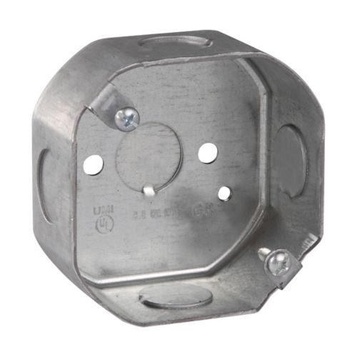 The Eaton Crouse-Hinds TP256 Octagon Outlet Box is designed for safe and secure electrical wiring connections, ideal for lighting fixtures, ceiling fans, and junction box applications. Made from durable galvanized steel, this octagon box provides a sturdy and fire-resistant housing for electrical components in commercial, industrial, and residential projects.